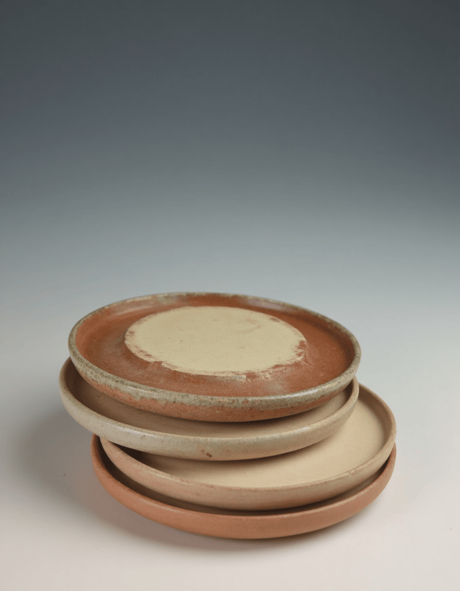 Set of handmade ceramic coasters with warm sun washed tones inspired by Jaipur architecture.