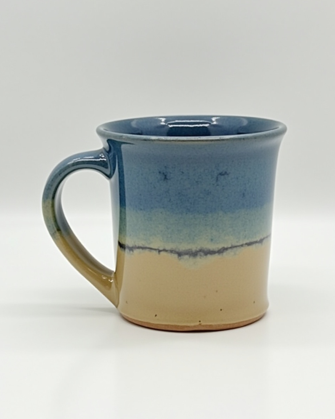 This mug is built for real use: a comfortable handle, a steady base, and a shape that feels good for morning coffee or late tea. The glaze layers coastal blues with sandy neutrals, and the finish varies slightly from piece to piece, which is part of the charm.