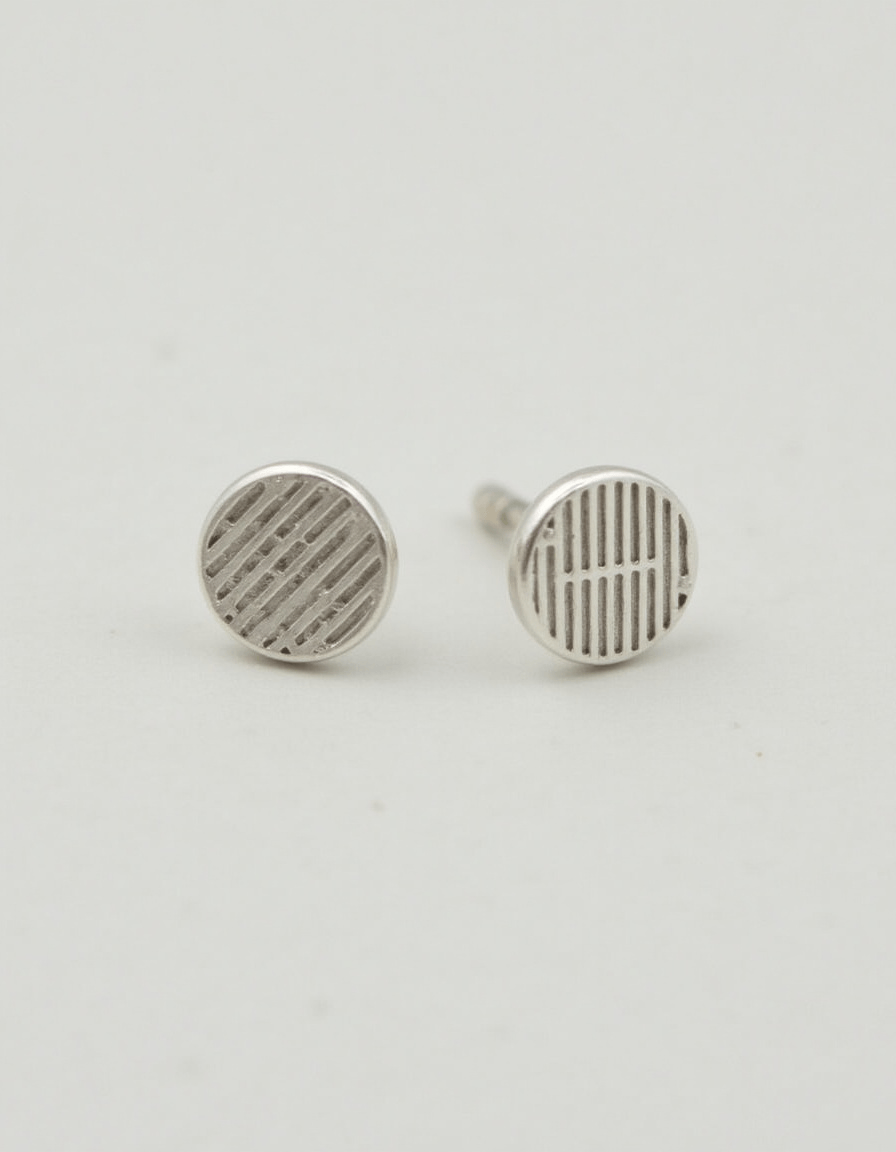 Sterling silver studs with a subtle line texture and a light polish. Posts and backs are comfortable and secure for daily wear.
